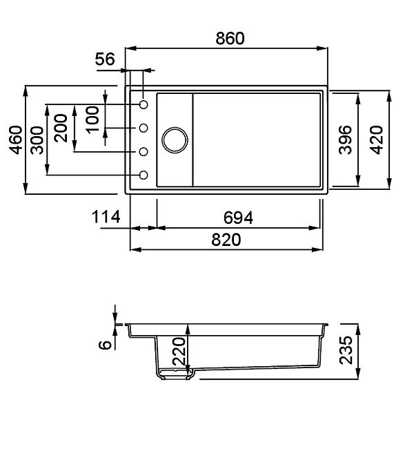 Hloubka vaničky:        220 mm