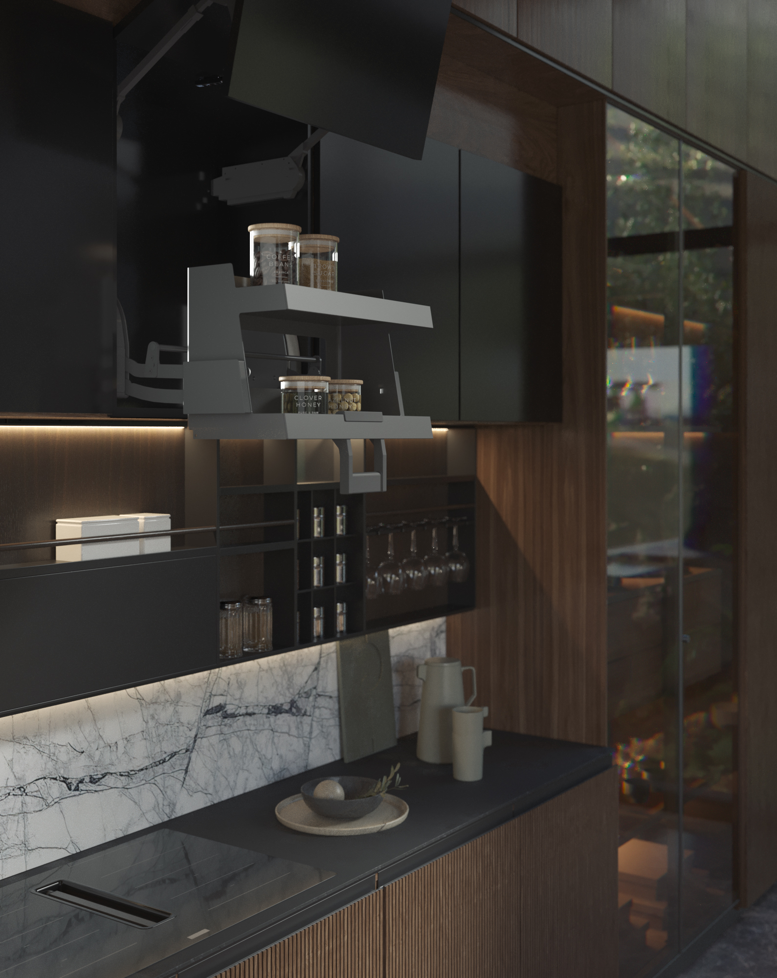 2x výklopná police YO-YO,šířka korpusu 600mm,2x protiskluzová podložka,s tlumeným dovíráním,ORION
