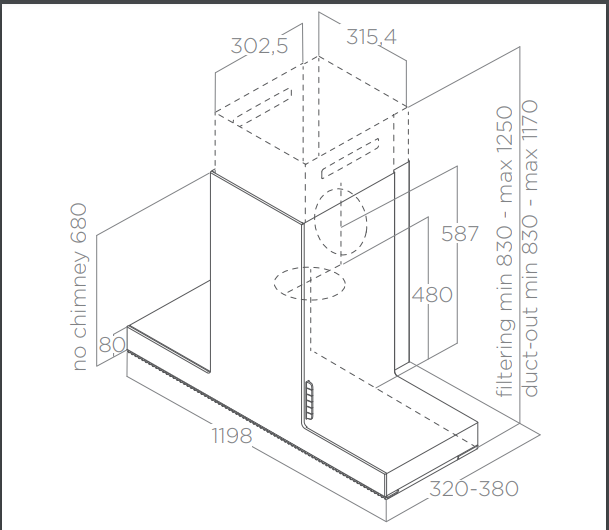 Odsavač par (digestoř) ELICA HAIKU je možné doplnit o montážní přípravek, který umožní plynule nastavit hloubku odsavače od 32 cm do 38 cm.
