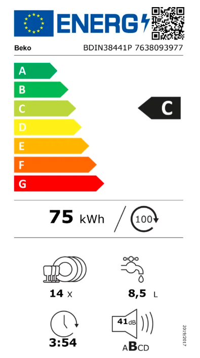 Vestavná myčka BEKO BDIN38441P Základní informace: - Druh spotřebiče: Vestavná myčka nádobí - Typ konstrukce: Vestavná, 60 cm - Energetická třída: C - Označení spotřebiče: BDI ...Více informací