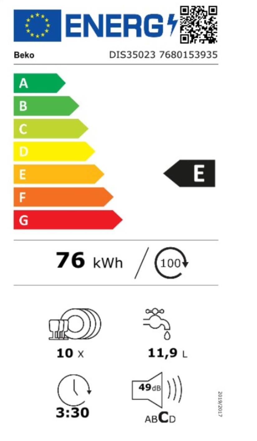 Vestavná myčka Beko DIS 35023 pro 10 sad nádobív energetické třídě E (A++ dle legislativy do 2/2021) s DirectAccess přímou volbou programů, LED signalizací provozu na podlahu, ...Více informací