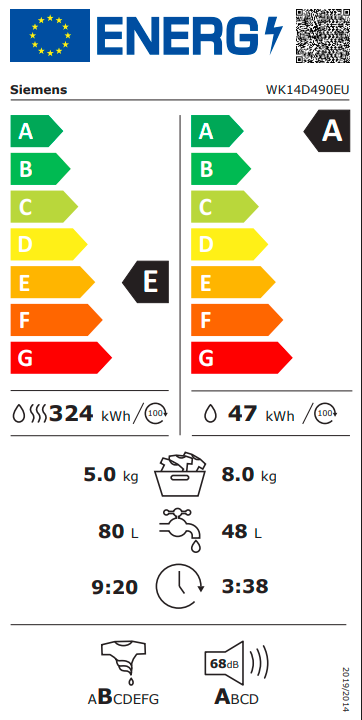 třída energetické účinnosti praní a sušení:¹ E